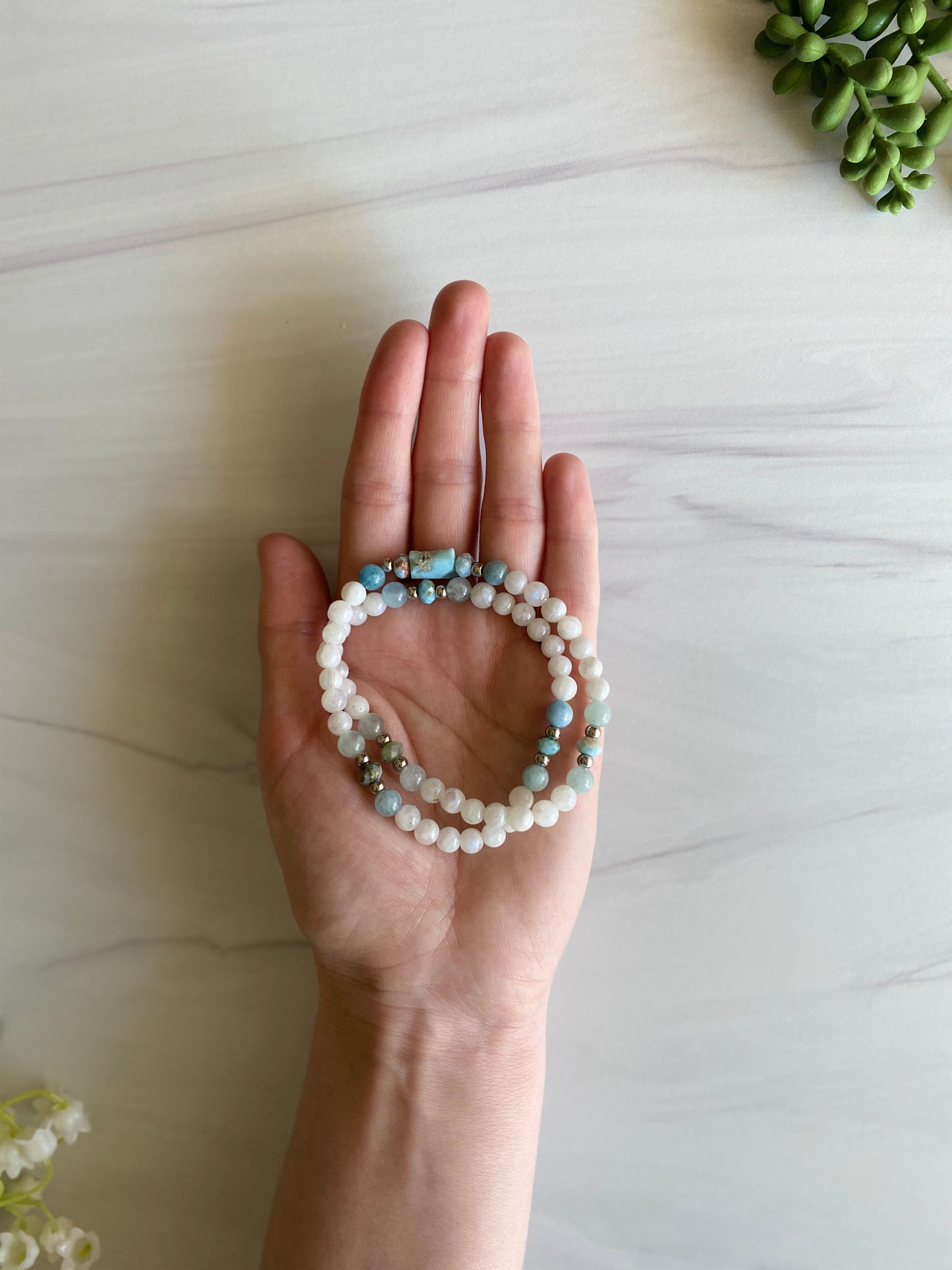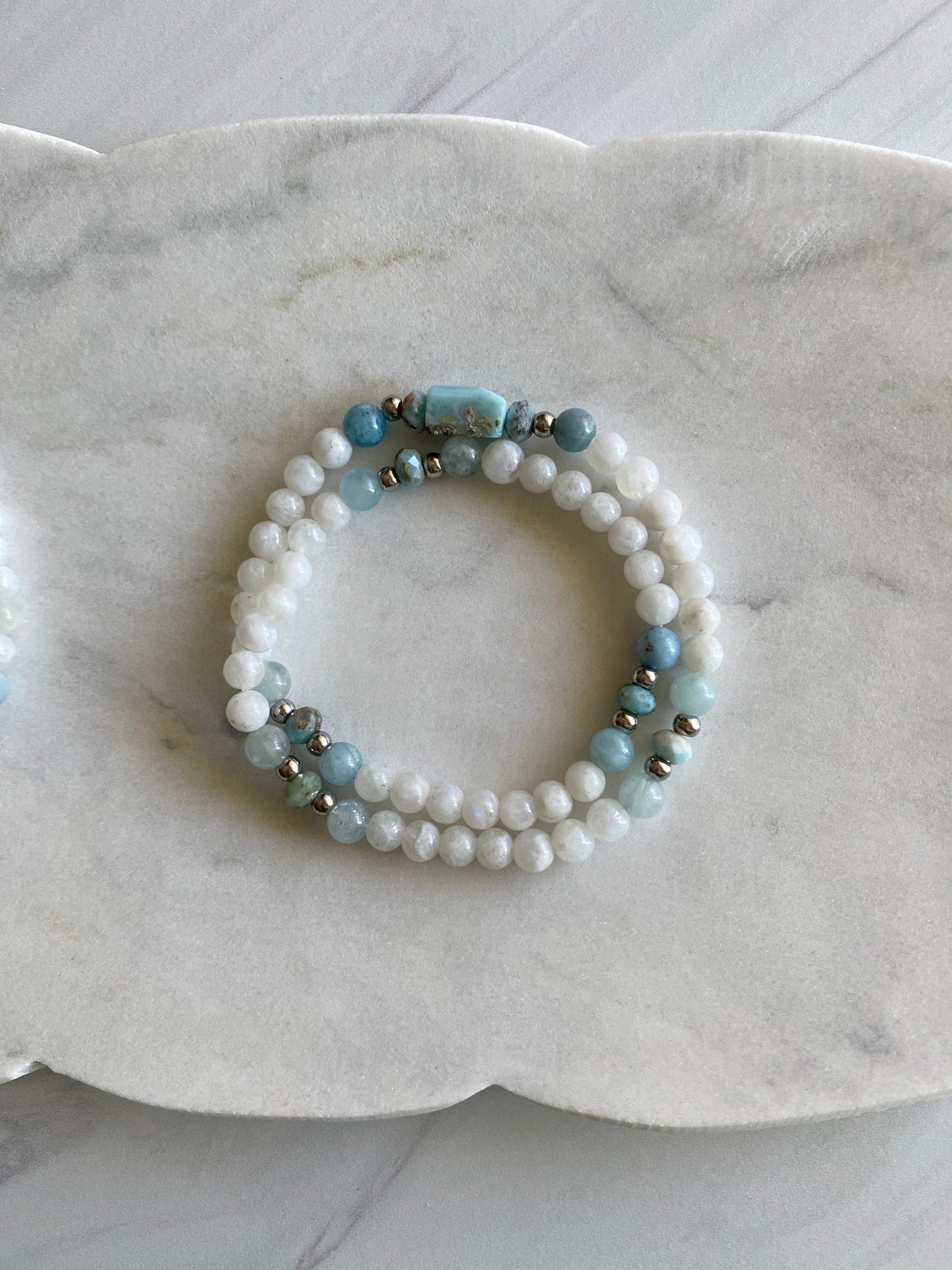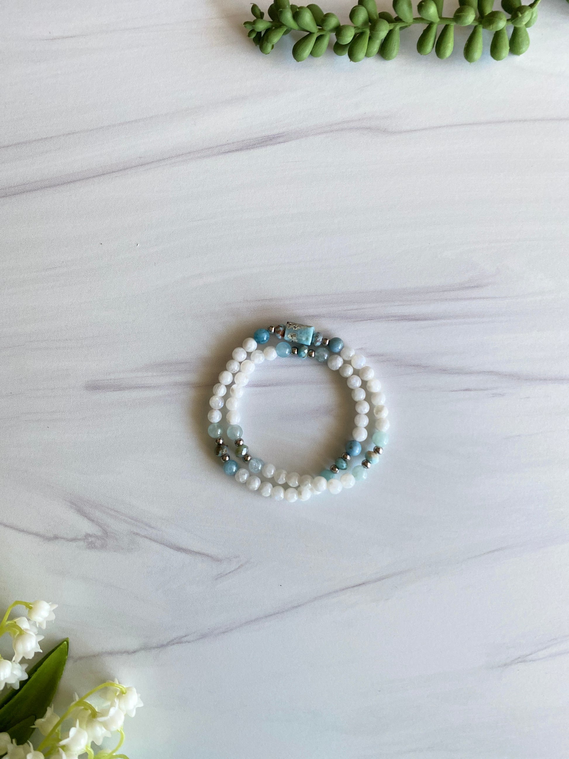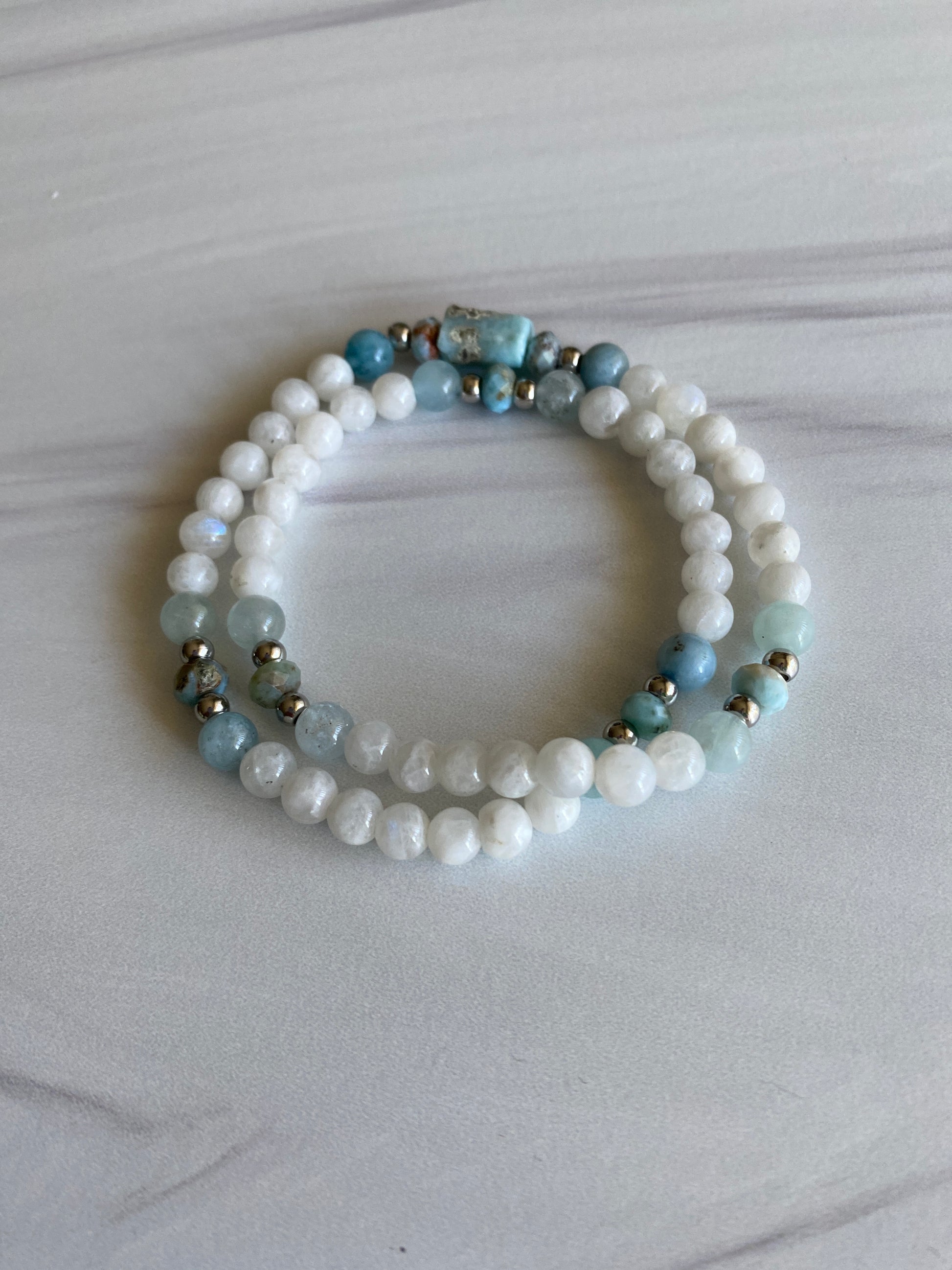 Larimar, Aquamarine, & Moonstone Wrap Bracelet | Divine Feminine Rising
